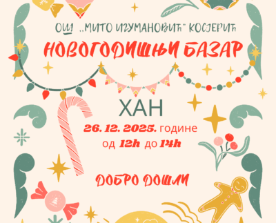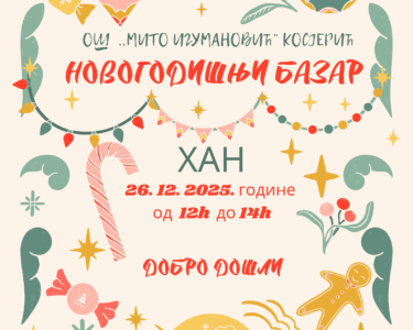 Učenici Osnovne škole „Mito Igumanović“ iz Kosjerića organizuju humanitarni Novogodišnji bazar u petak 26. decembra 2025. godine u Hanu u…